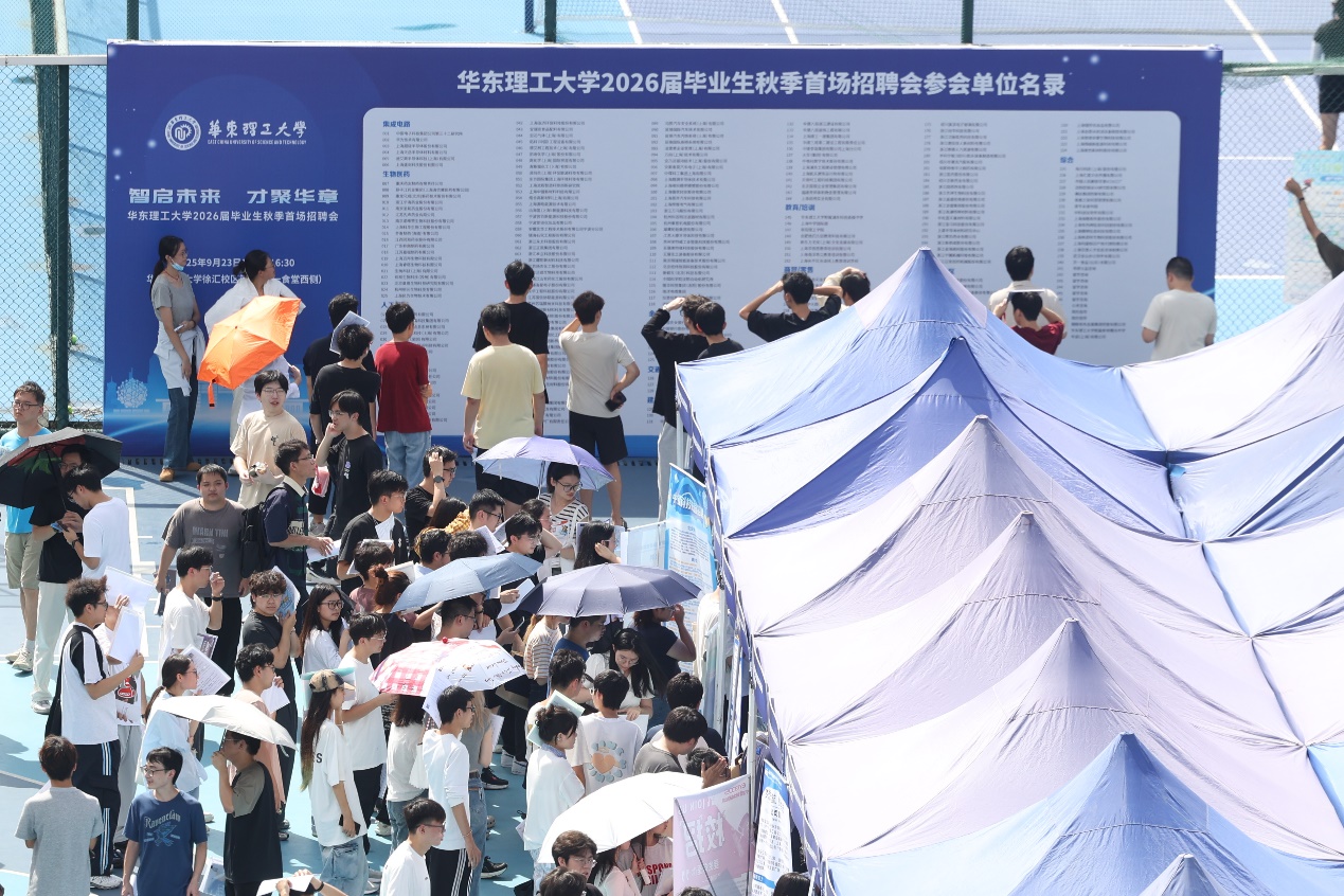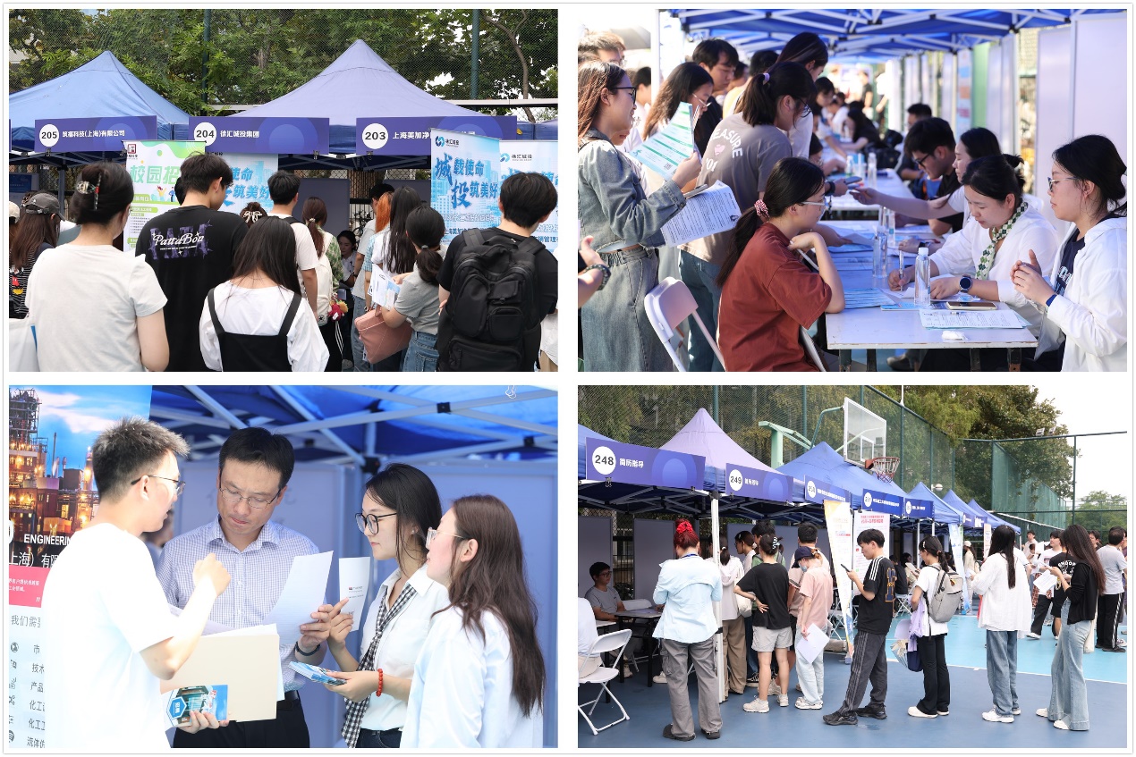 秋风送爽,才聚校园。为深入贯彻党的二十大精神,全面落实党中央、国务院、教育部、上海市关于高校毕业生就业工作的决策部署、积极推动毕业生就业工作落地见效,9月23日下午,我校2026届毕业生秋季首场招聘会在徐汇校区篮球场成功举办。本次招聘会吸引了来自上海、江苏、浙江、安徽、山东、新疆等地的近260家用人单位参与,其中包括华为、上海化工研究院、华谊新材料、徐汇城投、中建集团、申能、上海天然气管网、上汽通用汽车、中电科、中科院沈阳自动化研究所、横店集团、汉高、扬子江药业、康龙化成等知名企业,覆盖集成电路、生物医药、人工智能、化工、能源、建筑、教育、商贸等多个重点行业。绍兴人社、漕河泾开发区、奉贤金海街道等地发挥集群优势,组织多家企业组团来校招聘。招聘会现场提供2千余个岗位需求,涵盖我校所有专业大类,吸引了众多2026届应届毕业生踊跃参与。本次招聘会为毕业生搭建了优质的就业平台,现场气氛热烈,供需两旺。