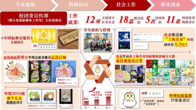 在答辩会中,24位来自各学院推荐的优秀学子围绕综合素养、专业学习、创新实践、服务奉献等方面进行了展示和分享。化学院的董绎文、信息学院的龚梦佳、国卓学院的肖奕晨的学习成绩稳居专业榜首,多门课程满绩并斩获国家奖学金,外语学院的俞文迪跨界突破斩获全国职业规划大赛金奖,商学院的于泽宇深耕城市韧性研究,成果获政府部门采纳,他们彰显了华理学子勤学善思、追求卓越的优良学风。材料学院的李圳明获卓越工程师拔尖创新人才资助,生工学院的杨永康聚焦产业痛点研发核心设备,物理学院的曹文盛在高端芯片领域产出国际顶级成果,资环学院的林晓燕积极参与各类学科竞赛,他们生动展现了华理学子面向前沿、勇攀高峰的创新精神。艺术学院的顾佳琪牵头艺术党课工作,材料学院的陈雪晴、法学院的郭亦嘉带领班级屡获校级荣誉,药学院的朱俊杰首创班级公众号,化工学院的吴越致力于解决同学诉求,他们用热忱与坚守为集体发展注入强劲动力。社会学院的陈宝琪积极开展学生资助宣传工作,数学学院的吕嘉怡致力于教育帮扶相关活动,化学院的乔琦源、机动学院的郭俊召赴乡村播撒知识火种,商学院的张颖、化工学院的周威坚持在公益领域发光发热,资环学院的刘骥元聚焦环保实践和志愿服务,他们凸显了华理学子扎根大地、服务社会的责任担当。信息学院的李佳强作为退役士兵积极科普国防知识和参军政策,体育学院的王艺涵作为大学生运动员积极传承校园龙狮文化,国卓学院的韩雨彤在跨文化交流中着力开拓国际视野,他们以青春行动诠释了深厚家国情怀。