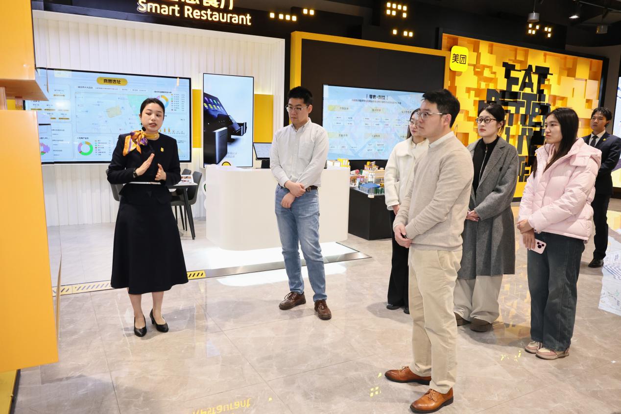 此外,周全华与信息学院、数学学院、商学院、艺术学院辅导员代表一行还走访了健康服务与数字消费领域的科技平台型企业——美团,开展校企对接交流。参访期间,美团相关工作人员带领我校代表参观了企业展示区,详细介绍了公司发展历程、业务布局与科技创新成果。在随后举行的交流座谈会上,美团校招组负责人吴心希介绍了公司校园招聘的整体情况、重点岗位需求及人才培养体系,并特别分享了公司在AI在大健康服务等新兴领域对跨学科人才的招聘计划。交流环节中,我校各学院老师与企业方围绕学生实习实践、专业能力培养、职业发展路径等话题进行了深入探讨,吴心希也针对不同专业学生的就业关切给予了具体分析与建议。双方就如何进一步推动校企合作、助力学生高质量就业交换了意见。