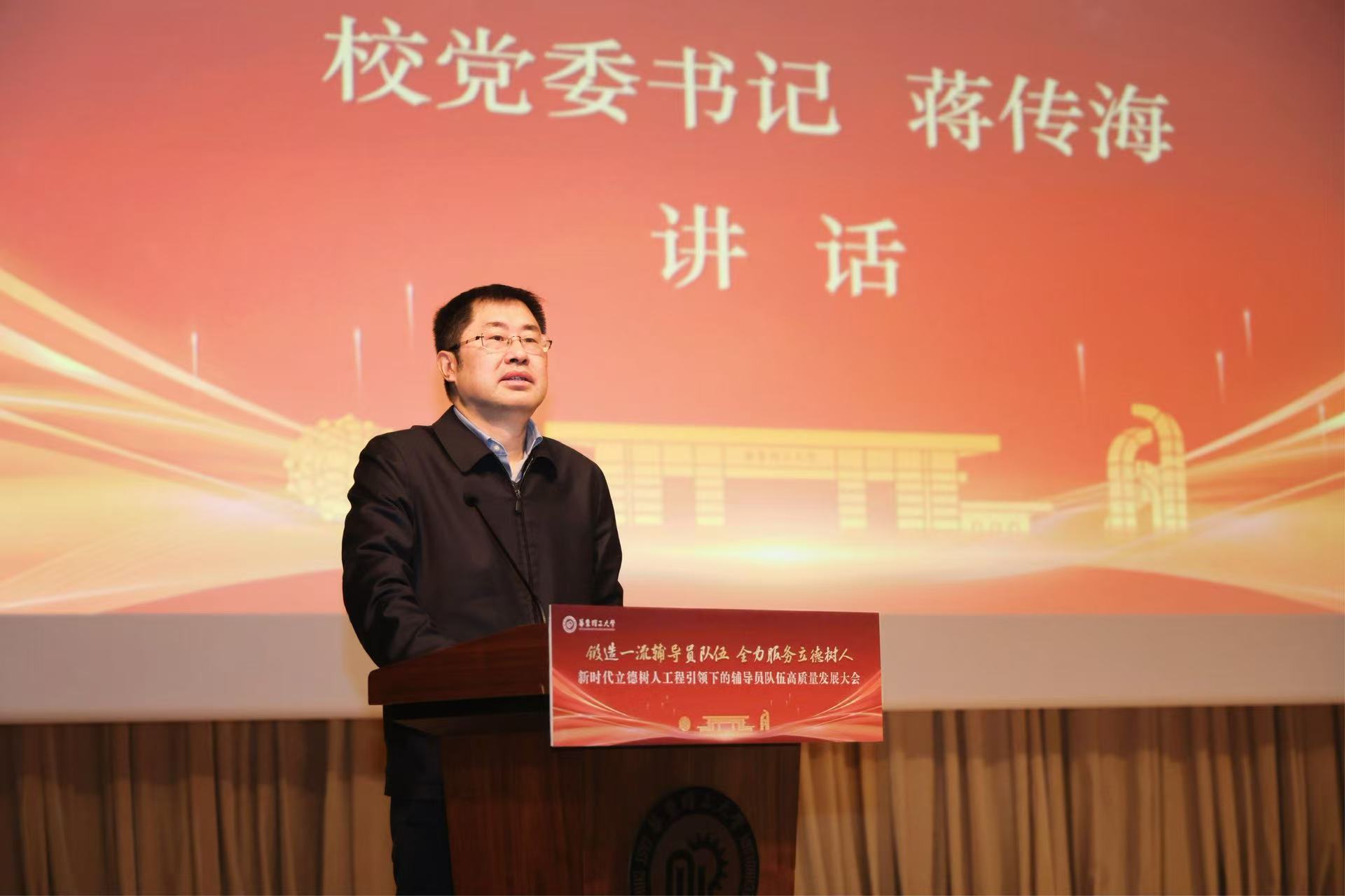 蒋传海着眼强国建设大局、立足学校发展实际,紧紧围绕立德树人根本任务围绕新时代立德树人工程这一战略任务,深刻阐述了辅导员作为“第四支队伍”的光荣使命、实践要求和保障举措。他强调,这支队伍是全学段思政教育的主力军、全场域服务成长的引路人、全链条人才培养的助推者,必须站在“为党育人、为国育才”的政治高度把握战略定位,在“教育强国建设”的时代坐标中扛起历史担当,从“学生成长需求”的现实维度践行价值追求。围绕推动辅导员队伍高质量发展,他提出三点要求:一是提高政治站位,深刻认识新时代辅导员队伍的育人担当,从党的事业后继有人的高度把队伍建设摆在基础性、战略性位置统筹推进作为战略任务来抓;二是增强履职本领,准确把握辅导员岗位建功立业的重要职责,在思想引领上彰显高度、在育人实践中展现深度、在服务成长中传递温度、在言传身教中树立风范;三是强化支撑保障,着力筑牢辅导员队伍高质量发展的坚实基础,畅通优化发展路径、深化协同育人、强化数智赋能,让辅导员干事创业有舞台、立德树人有合力、思政工作有实效。